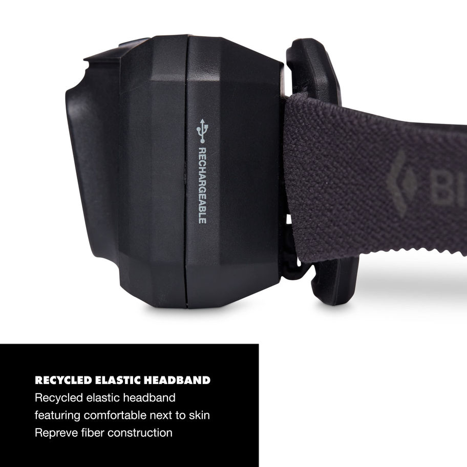Settings include full strength in proximity and distance modes, dimming, strobe, red, green and blue night-vision, and lock mode Brightness Memory allows you to turn the light on and off at a chosen brightness without reverting back to default setting PowerTap Technology allows instant transitioning between full and dimmed power Recycled elastic headband featuring comfortable next to skin Repreve fiber construction