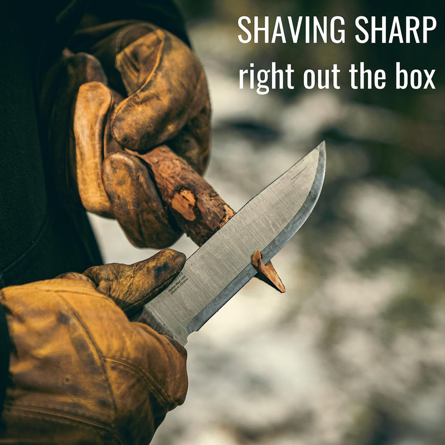 ✅ SHARP BLADE: Full Tang Bushcraft Knife made of Carbon Steel with Leather Case Razor-sharp durable Fixed Blade has a true scandi grind. The Camp Knife is sharp out of the box ✅ HIGH QUALITY: Fixed Blade Knife made of high 1066 carbon steel. Hardened to 56-57 HRC and holds an edge well. Well balanced. The handle of the knife is made of walnut wood, coated with Danish oil, which allows this tourist knife to be resistant to moisture and dirt. The handle is fixed with ties, it can be easily unscrewed in order to clean the knife ✅ CHRISTMAS GIFT: Needed thing for those who keen on fishing, hunting, camping and spending time actively. A great gift for true connoisseurs of knives. Stocking Stuffers ✅ DIMENSIONS: Total length - 10 inches(255 mm). Blade length - 5 1/3 inches(135 mm). Handle length - 4 2/3 inches(120 mm). Blade width - 1.2 inch(30 mm). Blade thickness - 0.1 inches(2,8 mm). Weight without sheath - 5.7 oz(160 grams). Weight with sheath and Ferro Rod - 10.2 oz(290 grams) ✅ SAFE CARRYING: Camp knife Adventurer CSHF is equipped with a leather sheath with ferro rod, which allows you to conveniently carry the knife on a belt or in a backpack or bag. And the ferro rod will be relevant in the most diverse situations