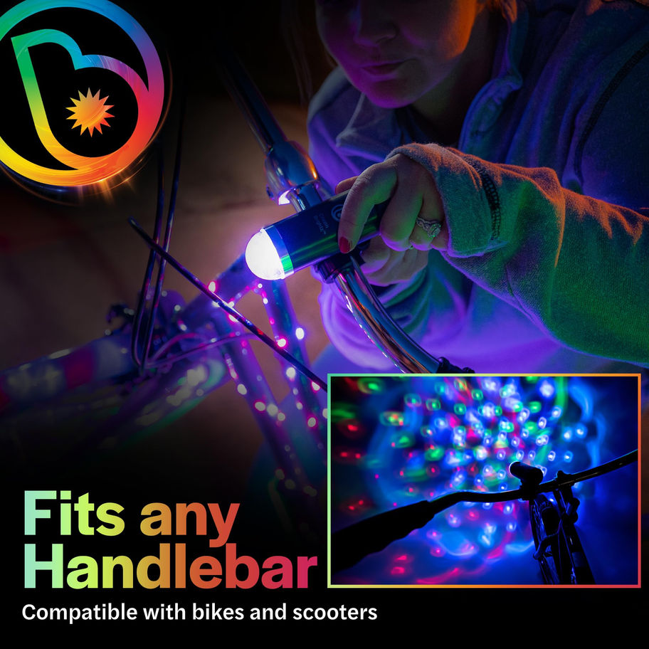 DISCO BIKE LIGHT – Designed to emit a full spectrum of vibrant red, blue, and green lights our disco LED bike lights is a fun colorful bike light for night riding and is a great gift for kids, boys, girls, men, and women QUICK-CLAMP MOUNT – Easily attachable to bike frames and bike or scooter handlebars with the included quick-clamp making CruzinBrightz our most popular burning man bike light year after year, keeping you look cool, safe and seen while riding at night MULTIPURPOSE USE – These colorful bike lights for night riding are perfect burning man lights, burning man decorations, and burning man accessories for bicycles of all sizes making them great gifts for adults and boys and girls of all ages BATTERY POWERED – Our LED bicycle light is AA battery powered, produces up to 20+ hours of lighting, and turn on and off easily with a simple switch making it great LED lights for bikes riding at night and pairs well with bike wheel lights GO BEYOND THE BIKE RIDING – Not into riding but love colorful lights? These blinking, tri-colored LED lights for bike are also great for parades, music festivals and burning man rave, glow rides, burning man accessories, burners, birthday gifts