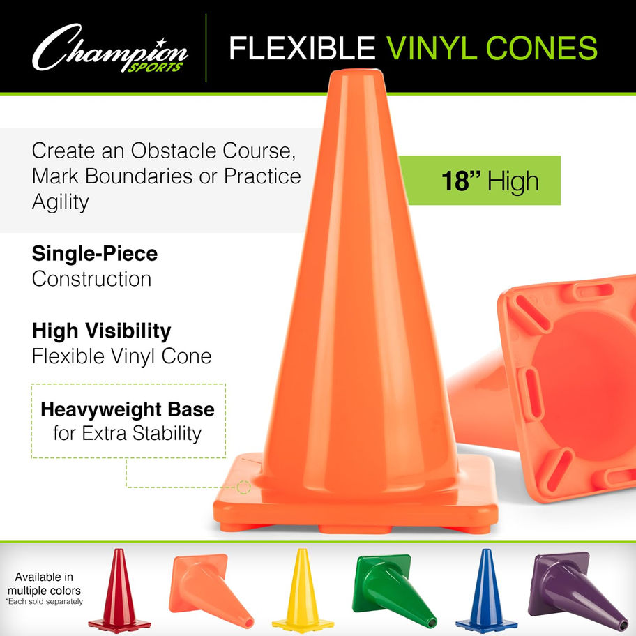 Champion Sports 18" High Visibility Flexible Vinyl Cone for Athletics