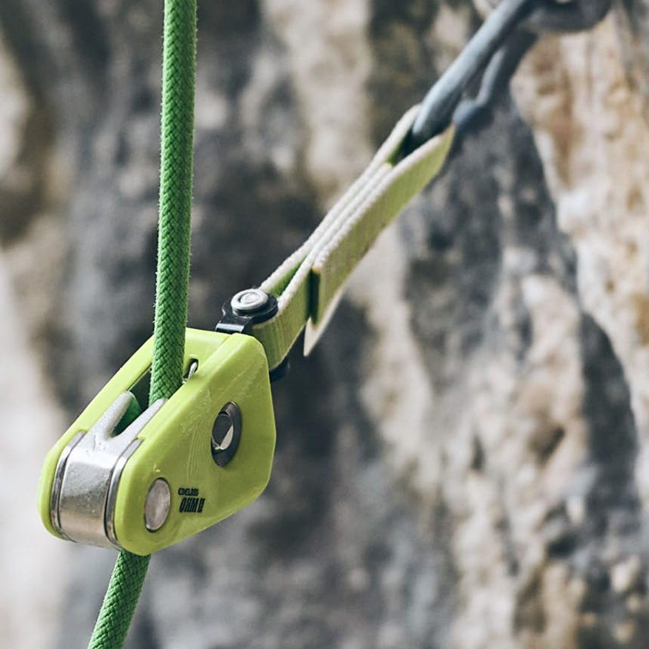 The 2nd generation of our innovative and successful OHM comes with some updates for easier usability. The ballast resistance to increase the braking effect of rope shafts with a large weight difference has a swivel joint that gives the device more freedom of movement. When hanging the device on the first hook, the hanging direction does not matter anymore. The locking system prevents accidental opening of the device and greatly simplifies the insertion of the rope and dismantling the device when draining. Installed in the first hook of the safety chain. No restriction of handling in the lead (no rope friction when spending ropes). For single ropes of 8.9 - 11.0 mm diameter Significantly lower forces act on the securing person / draining a heavier person is much easier to control In the event of a fall into the first hook, the device reduces the risk of a collision / 'Makes the securing person 25 kg heavier' / minimum weight securing person: 40 kg