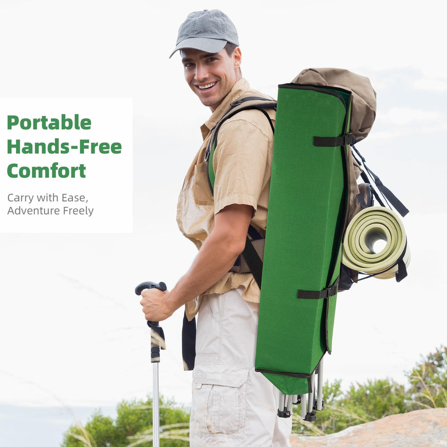 FOLDING OUTDOOR CHAIR - Portable beach, camp, or lawn chair with a higher arched back and 22.8" wide seat, patented tilt shade canopy, convenient carry bag, and mesh cup holders SUN PROTECTION - Folding camp chair provides 50% more sun protection thanks to the unique and innovative tilting shade functionality that rises, lowers, and tilts easily STURDY CHAIR - Features 600 x 300 denier polyester fabric for durability and comfort, and extra strong and durable fabric supports up to 225 lbs.; frame resists rust and corrosion PORTABLE SEATING - Included chair bag with carry strap makes transportation and storage simple CAMP CHAIR DIMENSIONS - Measures 30" D x 34"W x 52"H when assembled and sits 19.7" from ground and weighs 9 lbs