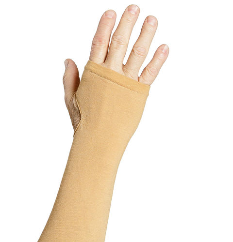 COMFORTABLE NON-COMPRESSION SKIN PROTECTION – Our non-compression, seamless knit material contours to your body’s natural shape. LIGHTWEIGHT & BREATHABLE – The core-spun cotton design is gradually tapered to stay in place without binding your skin. NON-RESTRICTIVE – Comfortable thumb opening allows for full range of motion. PROTECTS - Great for thin skin, post-surgery care, those with diabetes, and so much more. MACHINE WASHABLE