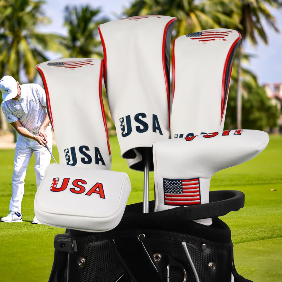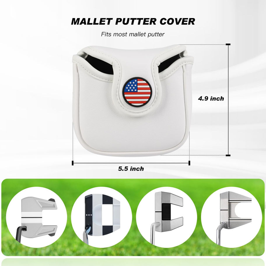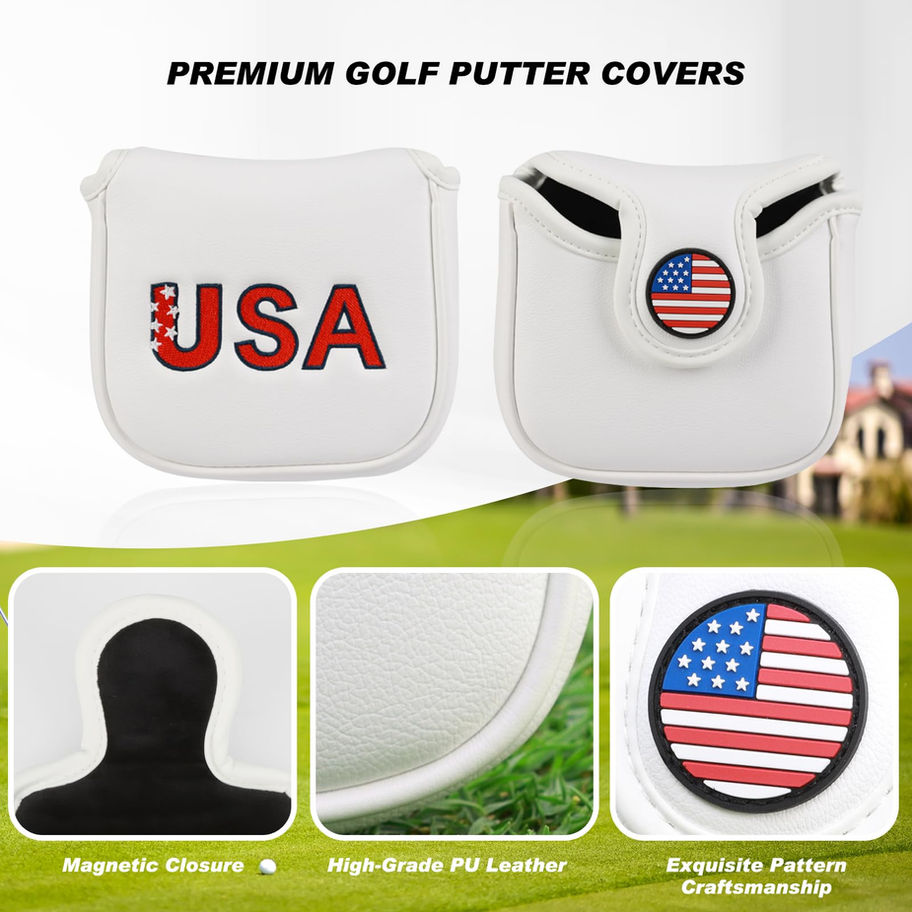 Mallet Putter Cover:This square putter cover fits square mallet style putter head cover,it doesn't fit for blade style putters. Strong Magnetic Closure:Our golf mallet putter cover is specially made with the magnetic closure which don't have to worry about the golf course bump area cover coming off. Material:The material of the putter cover mallet is PU leather. It's waterproof and easy to clean. The putter cover fits square putter perfectly and is wrapped and cushioned by the softest pillowy cloud is well protected. Inspired Design:Creative and patriotic USA design show your patriotism and protect your golf mallet putter in both.Show your patriotic pride on the golf course. Perfect Gifts for Golf Enthusiasts: Great funny golf gifts for all golfers and fans in golf season and holidays. A fashion golf putter cover adds individuality and personality to your golf equipment.