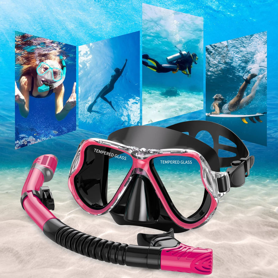 Greatever Dry Snorkel Set,Panoramic Wide View,Anti-Fog Scuba Diving