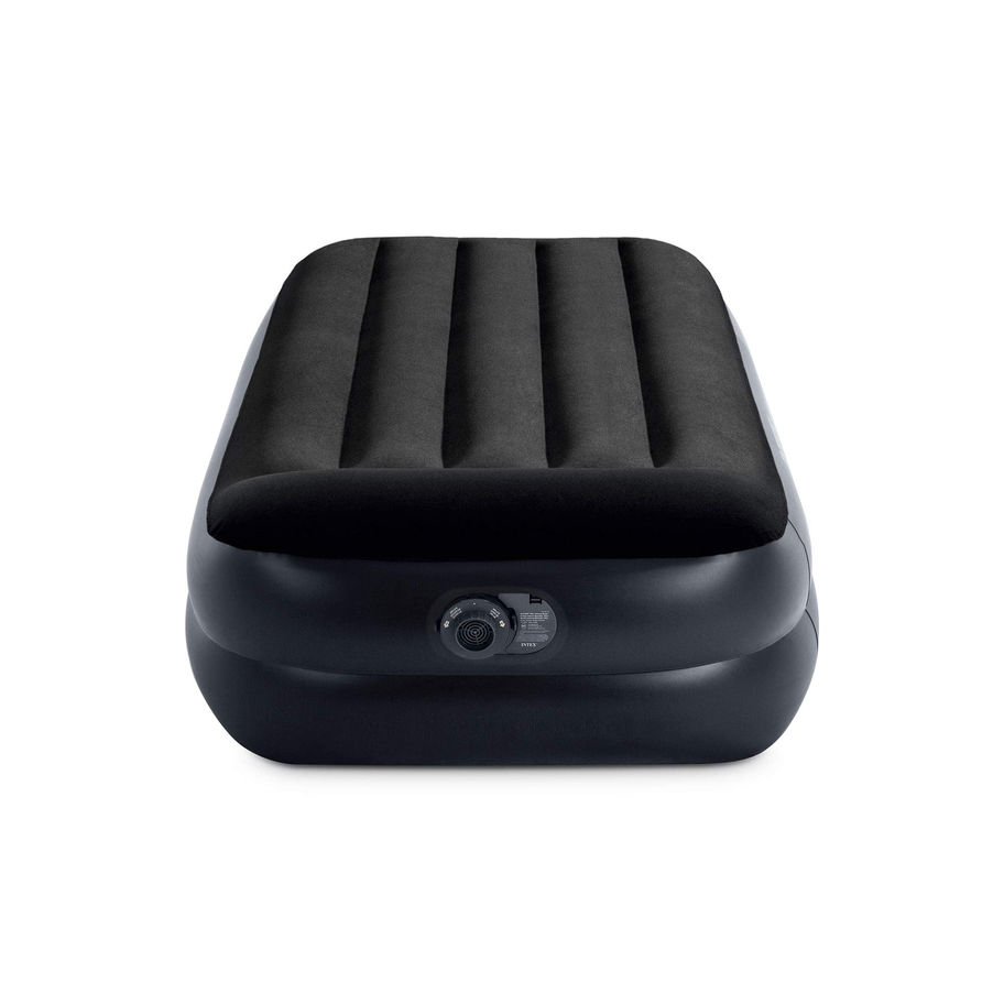 VERSATILE – Perfect for both indoor or outdoor use, this raised 16.5" bed includes a built-in pillow and air pump for convenience; the unique construction provides superior stability with a soft, velvety sleeping surface ensures a good night's sleep STRENGTH – Unlike traditional air beds that tend to sink or dip over time, our 16.5" Dura-Beam Air Mattresses are designed with bottom ring stability to withstand the weight of the sleeper without sagging or losing its shape FIBER-TECH BEAM CONSTRUCTION – Comprised of thousands of high-strength polyester fibers that provide enhanced comfort, stability and support; Fiber-Tech Beam Construction can withstand more weight and pressure without losing its comfort or stability BUILT-IN AC ELECTRIC PUMP – High-Powered built-in electric pump (110-120V) for hassle-free inflation and deflation; users can easily and quickly set up the air mattress when they need it and then deflate it (Approximate inflation time 2 minutes) STRETCH – At first inflation the material will STRETCH, which is sometimes misinterpreted as leaking; You will sense a loss of pressure, that's just the bed stretching, simply re-inflate the bed again; the bed will fully settle within 2-3 nights