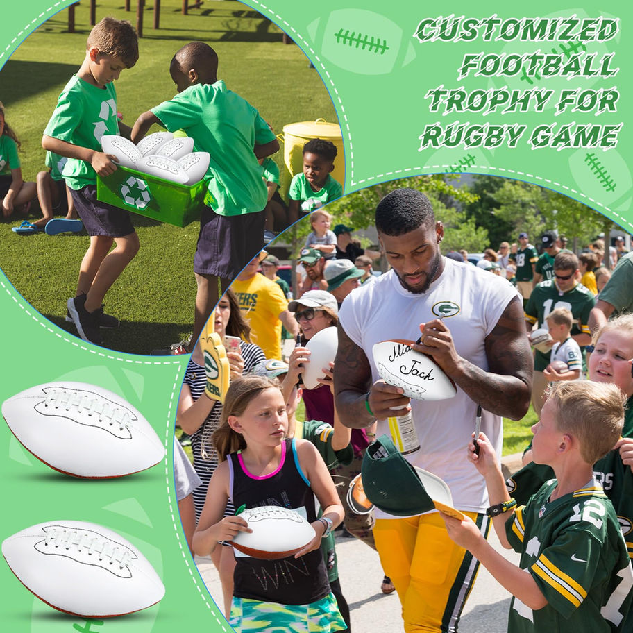 Complete Package for Sharing and Gifting: the package includes 9 pieces triple sided blank American football balls; The 8.27 inch autograph football is suitable for sharing and meeting usage needs, which are ideal customized gifts for any football fan; Note that in order to achieve optimal signature visibility, we recommend using an oily signing pen when signing, and do not touch the signature casually until the handwriting is completely dry Synthetic Leather Material: made of smooth and reliable synthetic leather material, 8.27 inch autograph football is easy to write and DIY; It is vacuum sealed for usability, but needs to be inflated before using Ample Space for Customization: with 3 white and 1 brown large panels, the faux leather football provides plenty of space for the entire team's signatures and messages; It can also be applied for personalized customization, such as high resolution printing of names, photos, or DIY text, use your imagination to decorate Suitable and Memorable Gift: the custom football is 8.27 x 5.12 inch, which is an ideal and memorable gift for football players, sons, boyfriends, daughters, fathers, or anyone who loves the sport, who will be happy when receiving Versatile for Various Occasions: soft football is suitable for many occasions football team banquets, marking milestones on the field, or even as a souvenir, versatile for various football related activities