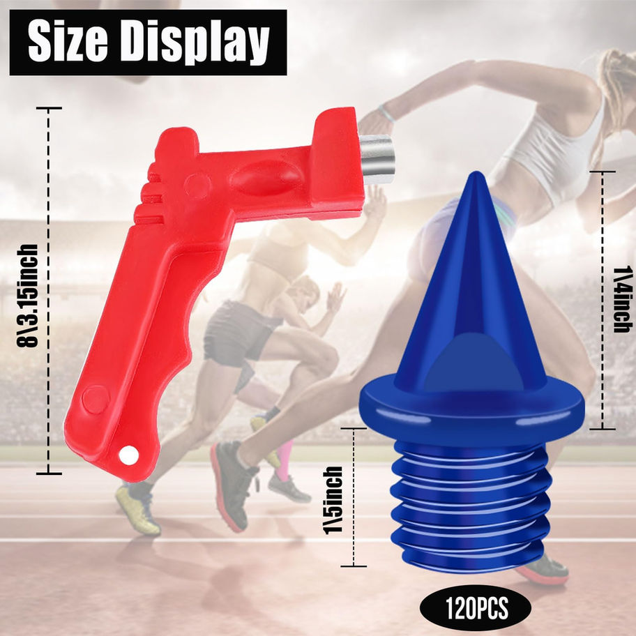 What You Will Get: Package includes 120 pieces blue carbon steel track spikes with 1pcs spike wrench, convenient for you to replace your shoe spikes. There are enough quantity for your daily use Quality Material: These shoe spikes replacement are made of quality carbon steel, durable and not easy to rust or corrode, can be used for a long time.Easy to match with most of the track shoes, improve your running balance of traction, flexibility and speed Easy to Use & Replace Spikes: Package includes a spike wrench. It is very easy for you to screw the pyramid track spikes into the shoes, convenient to replace the spikes. Ideal for athletic tracks, field and cross country surfaces Size: 6.35 mm (1/4 inch) in length, tapered and needle-shaped, which increases friction between the sole and the ground and avoids skidding,especially suitable for track sprints, long jump,running, outdoor sports activities Improve Running: If you like running, climbing, or you are a golf sports enthusiast, these golf spikes will help you a lot. This pyramid spikes will add the friction between the shoe sole and ground, thus can resist skid and improve your running speed