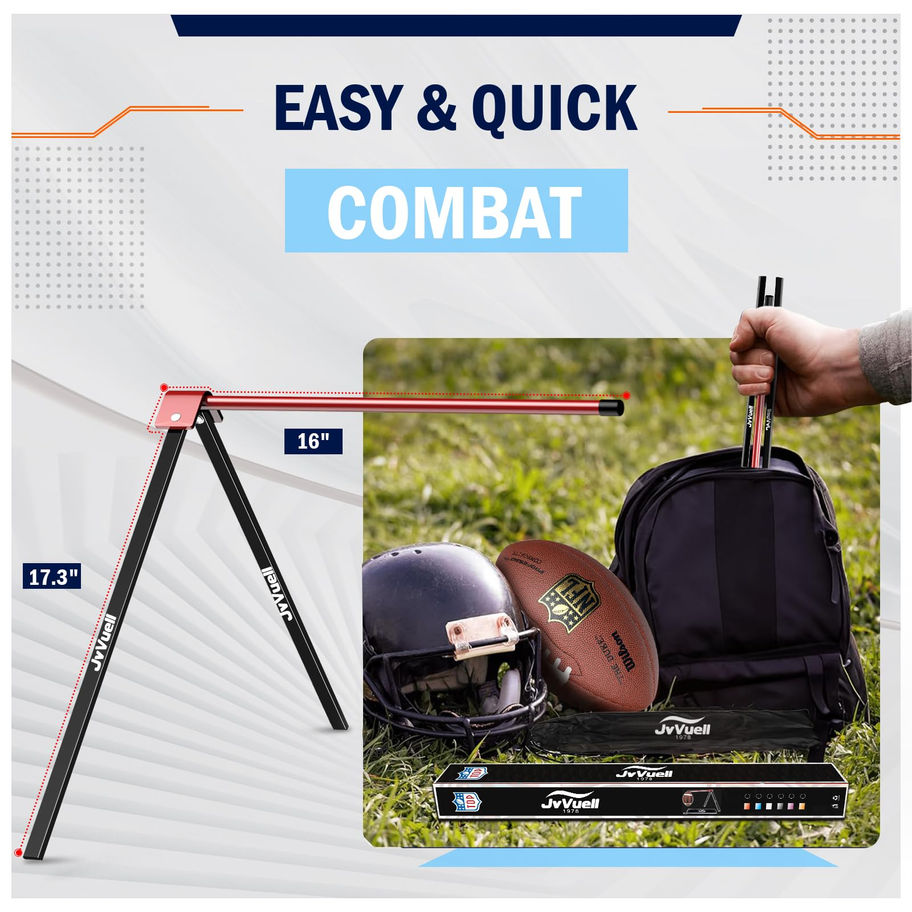 Compatible with All Levels Player: Football kicking tee holder are compatible with all sizes of football, all levels athletes are elevated to their best kicking level; Secret to being the best Football kicker. Best Top Materials: Football kickoff punter stand used top soft holder, Advanced steel arm, Dual stainless steel rivets, Reinforced aluminum legs; Scientific training can't be achieved without top professional sports accessories equipment. Anytime Anywhere Solo: Quick use and easy storage design with customized storage bag, high quality football field goal trainer gear for indoor & outdoor; Focus on enjoying professional solo practice growth. Best Football Gift: This stuff not only a football gift、 Christmas gift or birthday gift, but also all stages football player turning point, help them become the best of the best; You're the real Hall of Fame. About JvVuell Story: Our founders are sports enthusiasts and we focus on how to make the future better; So will continue to upgrade and invented the perfect product, thank you for growing our brand.