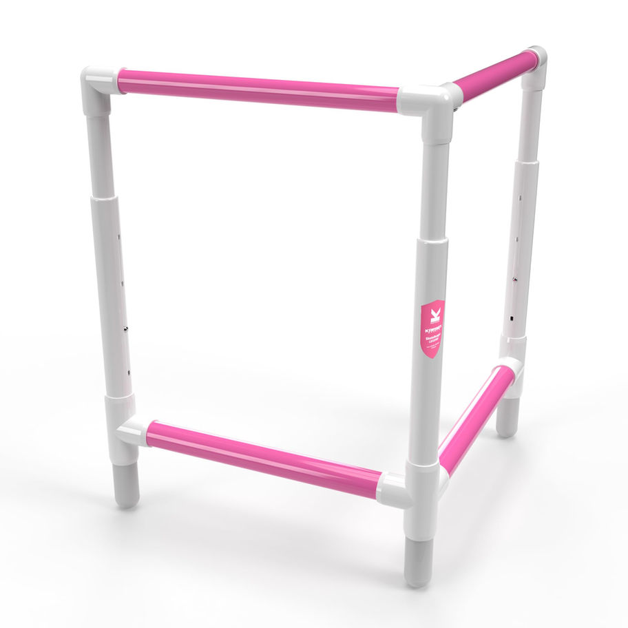 Our original, legendary, adjustable-height product into the skating market! Four adjustment points allow for a wide range of children's heights. We don’t recommend this for taller teens or adults as our set-size SkateRanger ICE (Large) or SkateRanger ICE XL would be recommended for those customers. Three weighted foot “nubs” provide a significant advantage over other ice trainers on the market; Minimal contact with the ice (from the rounded base of the foot nub) makes sure the trainer can pivot and turn exactly as the user needs and wants. The safety and security of the trainer are there for the user but unlike with roller skating, learning on ice makes it helpful for the trainer to move sharply at a moment’s notice. All Structural "furniture-grade" PVC construction for a lifetime of use. Much stronger than plumbing purchased at big-box stores and no metal parts which are a known safety hazard in rinks. Also, with our L-shaped design it makes it extremely easy for rink staff to stack or nest the trainers into each other which gives you more room in your storage area. Minimal assembly required; five minutes with just a mallet or tap hammer and screwdriver or drill-driver. Easy to understand setup instructions and QR Code included for fast access to our setup video. Proudly made in the USA, outside of Kansas City.