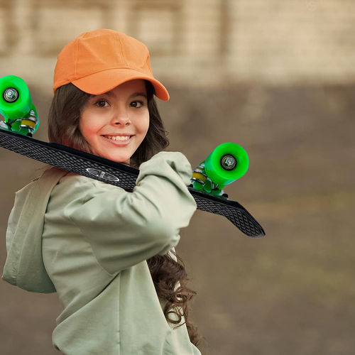 🛹 LONG LASTING FUN- Made with wide thickened deck sturdy and durable plastic for greater safety and stability that will resist even the hardest day and will be your company for years. 🛹 TAKE IT EVERYWHERE- This Kartium skateboard is designed with high speed ABEC-7 bearings and superior shock absorption, so you can use it for a fun ride on the neighborhood or in your favorite ramp park. 🛹 FOR EVERYONE- Perfect for anyone that want to enjoy a fun time in wheels, even if you are a beginner, pro, teen, adult or kids there is no limit. 🛹 SMOOTH RIDE- Created with aluminium alloy trucks with steel truck bolt & elastic PU support pad that is more durable and flexible than traditional gravity steering when turning left and right making the ride easy and fun! 🛹 FUN DESIGN- With the size of 22 inch that is the perfect size to move it where you want and beautiful color that can be used and love by any user.