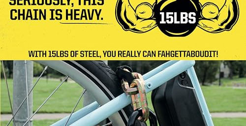 14mm six-sided chain links made of 3t HARDENED MANGANESE STEEL for ultimate strength Durable, protective nylon cover with hook-n-loop fasteners to hold in place Includes maximum security New York Disc Lock with 15mm MAX-PERFORMANCE STEEL SHACKLE Patented*, oval hardened STEEL CROSSBAR for extra security Hardened DOUBLE DEADBOLT locking for extensive holding power