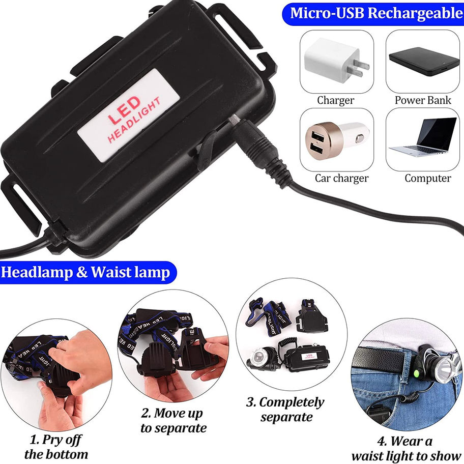 LED Headlamp USB Rechargeable, Head Lamp Super Bright 8000 High Lumen