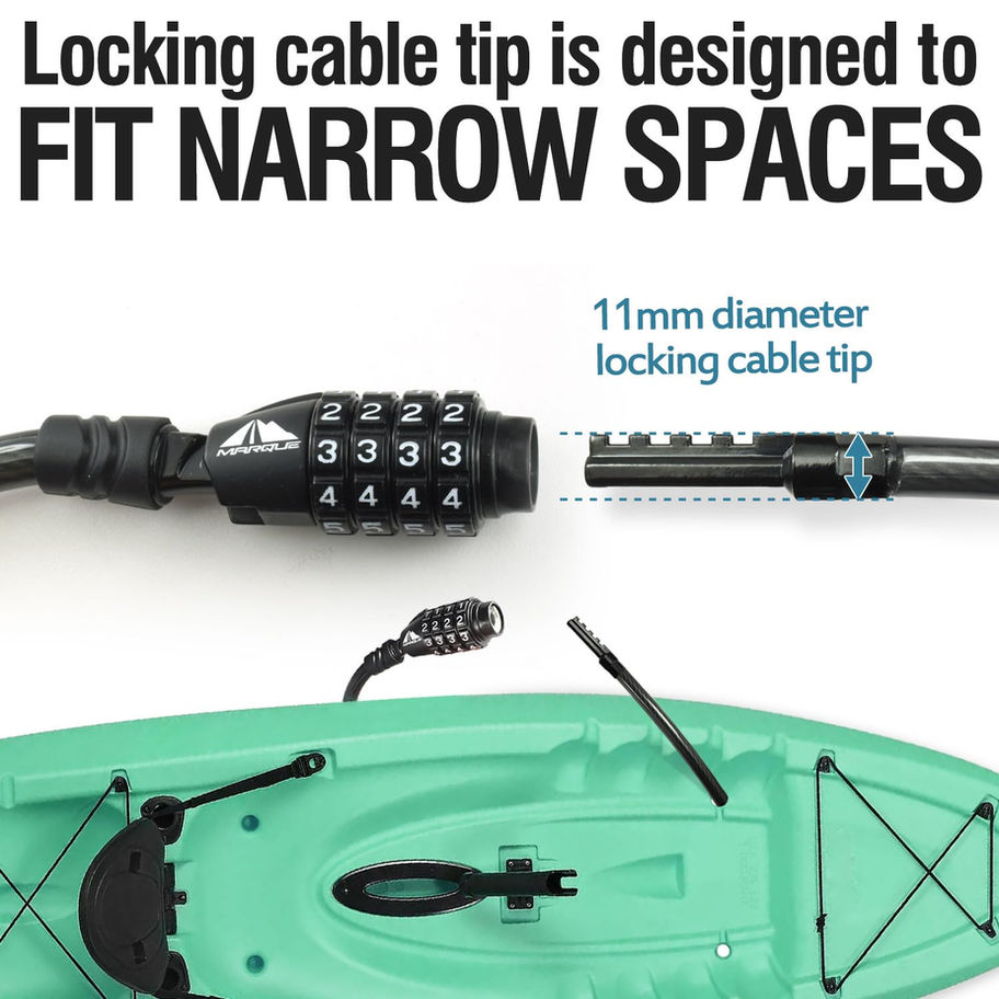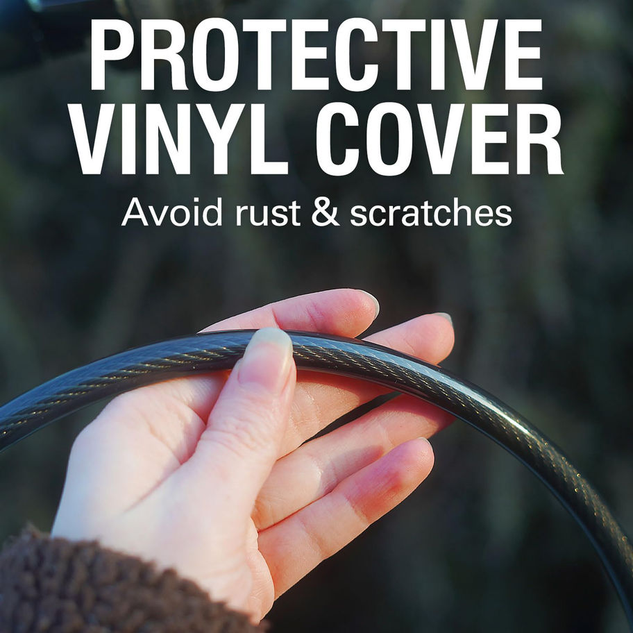 Easy to Use Combination Lock - The lock features a convenient combination mechanism that allows you to set your own unique code. No need to worry about carrying keys or losing them; simply remember your personalized combination for quick and hassle-free access. Multipurpose Design - Male end of the cable is designed to fit through narrow and tight spaces making it perfect to secure kayaks and paddleboards and also other common items like scooters, gates, etc Secure Your Bike - Our 3/8" bicycle lock with combination is the perfect bike cable lock solution for securing your bike and keeping it safe from theft. Cable is wrapped with vinyl covering to protect against scratching surfaces. Versatile and flexible - The cable is designed with flexibility in mind. It comes in variety of different length models, allowing you to secure different types of items to fit your needs. Its coil means any unused portion will coil together and not take up additional space. Made With 7 Braided Steel - Our lock for bike is made of heavy-duty 7 braided steels to deter theft, providing you with peace of mind. Now in straight cable!