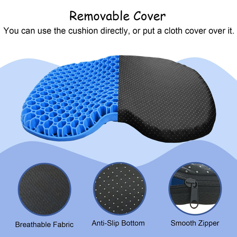 【Help Relieve Pain】Double-layer gel cushion design. thicker than traditional cushions. Not only provides Maximum Support for Complete Comfort but also more comfortable effectively prevent and alleviate various pain symptoms, help avoid numbness in the buttock’s muscles and lumbar strain. Ensuring you remain comfortable while kayaking 【Breathability & Enjoy the Coolness】The gel kayak seat pad has a therapeutic thick honeycomb gel design to increase air flow for ultimate cooling comfort to prevent seat sweat. double-sided structure design, which makes bearing loads breathability better 【Super Soft & Highly Elastic】The kayak seat cushion is made of 100% high quality gel material, has cushioning property that it restores to its original shape as soon as it is stretched and squeezed,hard to deform and easy to carry, It allows to be folded and placed it in your bag, perfect for any outdoor activities 【Anti-Slip & Waterproof】The gel material is waterproof and non-slip,When the kayak seat cushion gets wet,you can also sit comfortably and safety, ensuring stability and security even in wet conditions 【Easy to Clean & Portable】 The paddle seat cushion is equipped with a detachable cloth cover with zipper design and silicone anti-slip particles at the bottom, you can use it alone or in combination with the cloth cover