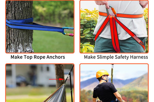 [SPECIFICATION] These climbing slings length have 12''(30cm) 24''(60cm) 48''(120cm)71''(180cm) 95''(240cm) [EASY TO CARRY] Every slings the width :0.7inch,Thickness: 0.11inch.Palm size, Lightweight easy to put it in your pocket to carry. [DURABLE] Maximum breaking force test: 23kN.CE EN 566,UIAA 104 Certified,ensures its security.Climbing slings you can trust. [MATERIAL] Nylon Sling is light but a strong climb sling, made of tube nylon webbing machine sewing, and this nylon sling has a long useful life. [EASY TO MAKE] Create top rope Anchors for Climbing, make a simple safety harness. Use to build a swing, self-belay while rappelling, and Tree Work and Rigging etc,Usually every climber carries multiple.Use your imagination, you can use it in many places.