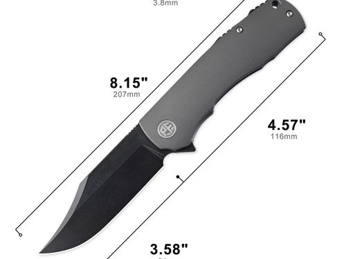Blade Materials: 154CM Steel. High Corrosion Resistance. Handle Material: Aluminium. Lightweight, High Corrosion Resistance, High Strength. Size: Total Length Size is 8.15", Blade Length is 3.58", Blade thickness is 0.15". Blade Surface Treatment: Ti PVD Coating & Black Stonewashed. Ambidextrous Pocket Clip & Lanyard Hole: Easy to carry, it will provide multiple carrying options.