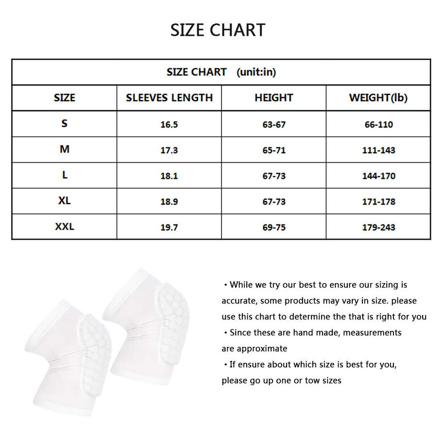 PACKAGE INCLUDED --- 1 Pair (2PCS). Do not machine wash or hand wash. QUALITY FABRIC HEX PROTECTION:Closed cell foam padding protects your knees from high impact activities and sports. And Our leg sleeves are made of ultra-high density elastic nylon fabric, comfortable, breathable and durable, it absorbs sweat quickly and keeps your legs dry. and it won't be deformed no matter how hard you exercise. DESIGN --- Nice workmanship with EVA pads. And Double-layer wavy silicone anti-slip strip on the inside of the thigh design to protect your knees and legs from crash pulling during the sporting. Light smooth & high elastic fitting, rapid perspiration, drying and good breathable as well with anti slip silicone gel band avoid to fall off. DURABLE FOR DAILY WEAR OF Knee Pads : With a 4-way stretch capability and compression, this knee support for women and men improves your muscle endurance while participating in your favorite sports without restricting your performance or cutting off blood circulation. MOISTURE WICKING TECHNOLOGY - Performance fabric keeps you dry and odor-free. Our products is breathable, moisture-wicking fabric that stays warm in cold temperatures and cooler when the temperature rises. Keep Cool & Dry with advanced Moisture Management Tech APPLICATIONS --- It is mainly designed for contact sports: Basketball, Football, Baseball, Volleyball, Lacrosse, Paintball, Soccer, Cycling, Tennis, Crossfit, Volleyball, Jogging, Powerlifting, Skateboarding, Triathlon, Walking, Hiking, Wrestling, Skiing, Golf, Soccer, Zumba, Climbing, Gymnastics, Weightlifting, Yoga, Squats, Baseball, Bodybuilding, Martial Arts, Runners, Dance, Gym Workouts, Exercising and Other ATHLETIC Fitness SPORT.