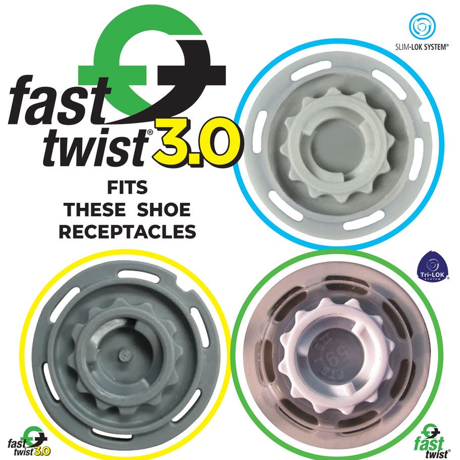 Fast twist 3.0 is a backwards Compatible System that will fit into any fast twist, Tour lock or TRI-Lok/SLIM-Lok receptacle 18 cleats per package From the world's leader in sports cleat technology