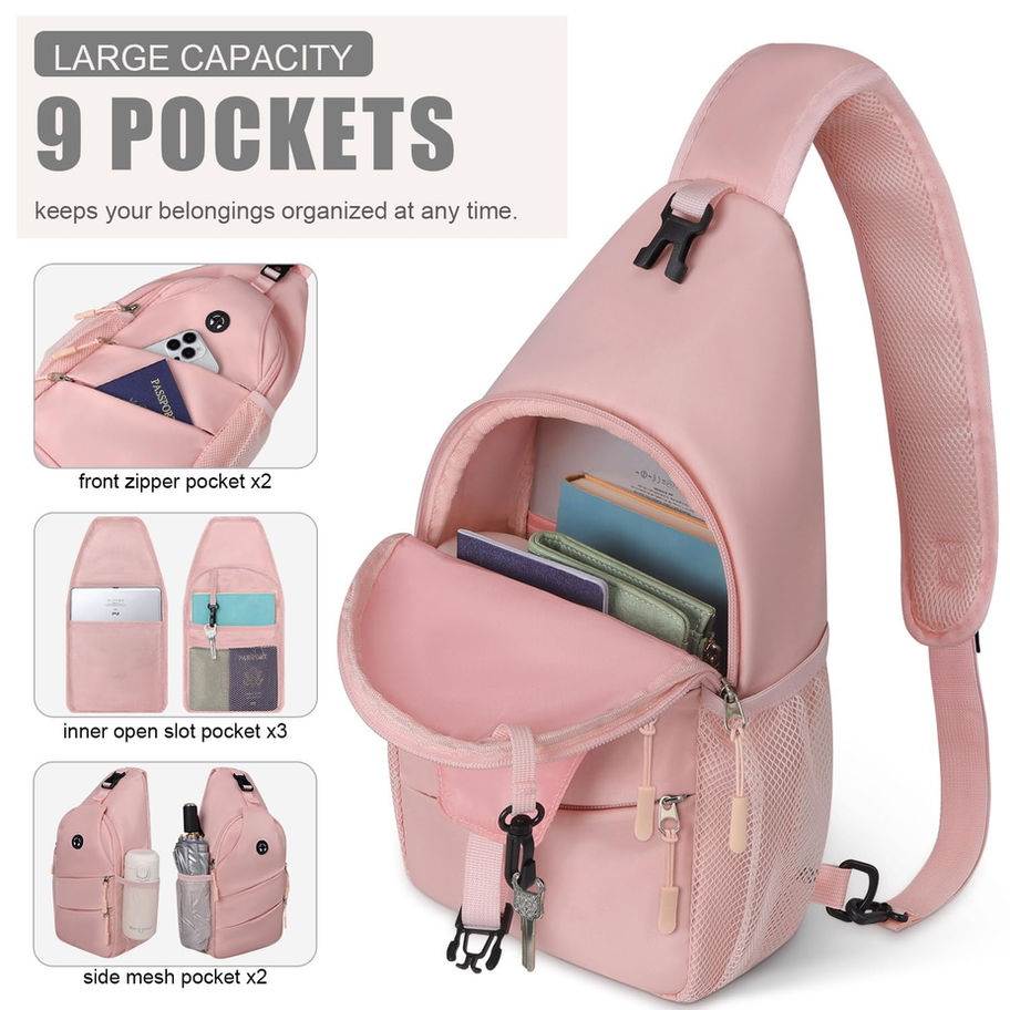 Adjustable Strap For Both Sides: Our bags have one D-ring on each side of the bottom, and a detachable shoulder strap buckle. You can attach the strap for easy access on your left or right shoulder, reducing the strain of carrying your bag for a long time. The strap can be extended up to 42 inches to accommodate different body sizes and you can adjust the length to your comfort. Well Organized- Multi-pockets: You don’t have to waste time searching for things in a cluttered bag! We have 2 front zipper pockets and a buckle pocket that can fit your wallet, power bank, and tissue. The main pocket has enough space to fit all the essentials you need, it has 13 open pockets can easily store your iPad, cosmetics, or other essentials. Side mesh pocket can store anything you need for easy access. A special hook for hanging your keys! Have everything you need within reach! Durable & Waterproof Material: Our chest bag are built to last with thick, durable, and abrasion-resistant fabric. The material is also waterproof and tear-resistant, whether you’re hiking through rough terrain or commuting in the rain, our backpacks will keep up with you, ensuring that your belongings stay safe and dry. The backpacks are designed to be lightweight and comfortable, making them perfect for long hikes or daily commutes. Comfortable and Safty: Designed with a soft, breathable mesh back panel which is especially important for people who are carrying heavy loads or hiking in hot and humid weather, it not only provides a comfortable carrying experience, but also isolates the items inside the bag from the skin, prevent discomfort caused by friction. The shoulder straps are designed with reflective strips to ensure you are more visible, so enjoy the fun of outdoor exploration without any worries. Practical And Pleasing: Are you looking for a classic and versatile cross body bag that never goes out of style? Pritent crossbody bags are an ideal product that combines fashion, convenience, and performance. The perfect stylish appearance easy to match various styles of outfits.And there is a hidden headphone hole on the front that provides easy access to your headphones, without the hassle of tangled cords. It’s a great way to stay connected to your favorite tunes while on the go!