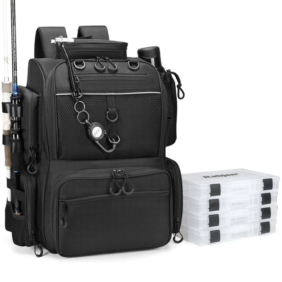 Rabjen Fishing Tackle Backpack with Rod Holders, Bottle Holder,