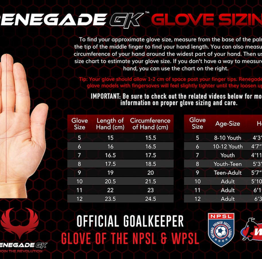 TRUSTED BY PLAYERS & THE PROS: RGK gloves are designed to perform and built to last. The Eclipse series is no exception. Renegade GK is trusted by professionals in every major soccer league including the MLS, NWSL, USL Championship, Premier League, Bundesliga, La Liga, and Liga MX. PROFESSIONAL LEVEL: The new RGK Eclipse series is our 1st truly pro-level goalie gloves. These gloves were designed from the ground up using feedback from pro keepers combined with the best materials and construction methods we know of. We’re not claiming it’s the best glove on the market, but we’ll put it up against any competitor in a head to head. PRO-LEVEL GRIP PERFORMANCE & CONTROL: All Eclipse gloves use high-performance German EXT Contact Grip latex, which is the standard for professional level goalie gloves. This plus other upgrades like the extended palm, 180° thumb wrap, and pre-arched palm instantly improve grip and ball control. LEADING SAFETY PROTECTION: The Eclipse’s composite 4+3MM latex palms and 6MM breathaprene backhand with raised injected rubber ridges provide extra impact protection, while the neoprene cuff and 6CM 360° Duratek strap give excellent wrist support. SUPERIOR VALUE & COMFORT: We've tried to pack as much value into every RGK glove regardless of play level, while ensuring that they are comfortable. The Eclipse’s breathaprene unibody design ensures a great form fit, maximum breathability, while the unique extended palm design puller makes them easy to put on.