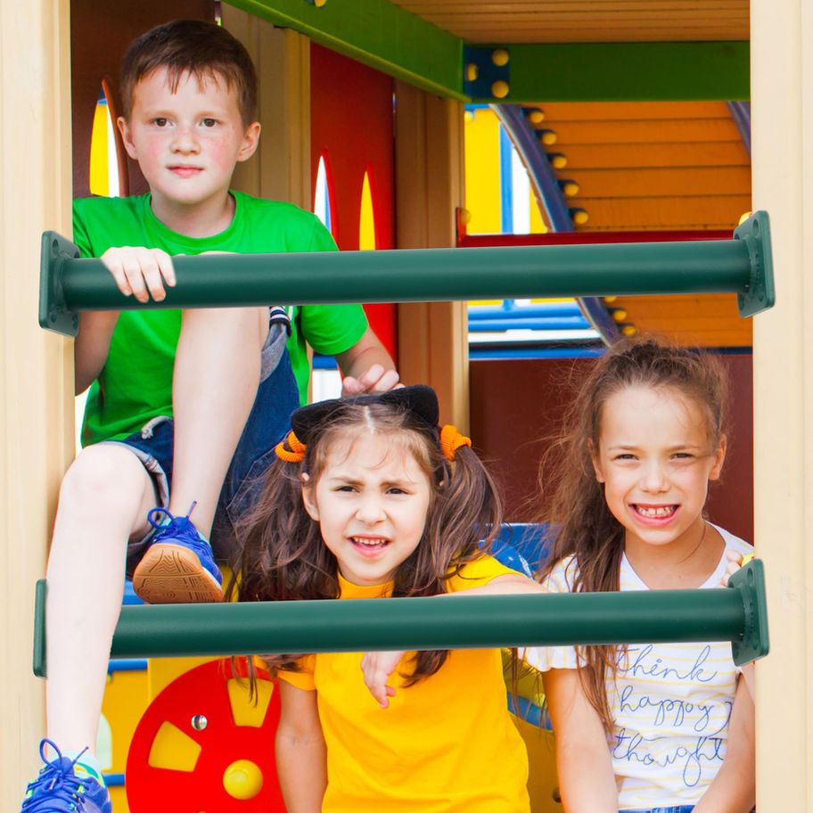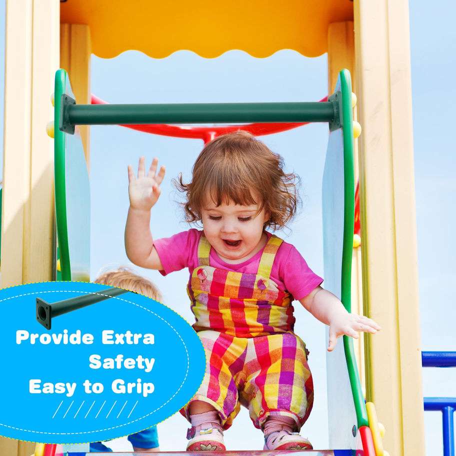Size detail: the playground monkey bars have two sizes for you to choose, one is about 38.5 cm/ 15.16 inch in length and the other is about 41.9 cm/ 16.5 inch in length, the diameter of each monkey bar is about 3.2 cm/ 1.26 inch, suitable for children to grasp Quality material: the climbing bars for kids are made of quality steel with a green powder waterproof coating on the surface, durable, good quality, not easy to fade or break, has a smooth surface and is safe to use, bring you a good use experience Easy Installation: the playground ladder bars are easy and convenient to install, including all the accessories needed for installation, you only need to screw the screws into the round holes on both sides to fix it easily, and you can easily change the installation position for them to meet your different needs Wide application: the outdoor metal monkey bar is suitable for various indoor and outdoor places, such as outdoor playground, backyard, tree house, jungle gym, game house, climbing frames, swingset, bunk bed and more, can exercise children's climbing ability, enjoy outdoor fun Package include: you will get 4 green kids monkey bars, complete with accessories, enough quantity to install in various positions, convenient for children to climb, play and exercise