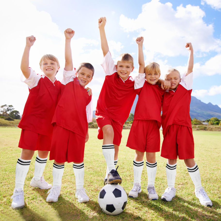Shin Guards Soccer Youth: Soccer shin guards are the best choice for young footballers looking for reliable and comfortable leg protection. The leg guards are ergonomically streamlined to fit the calf perfectly without compressing or shifting during play, providing stability and comfort throughout the game. High Protection & Lightweight PP Shell: The high strength PP shell effectively reduces the impact on the bones and muscles of kids legs during sports, providing optimal safety on the field of play; The EVA shin guard base layer provides exceptional comfort and long-lasting cushioning, ensuring a comfortable playing experience. Perfect Match with Football Socks: These shin guards match perfectly with cotton football socks. Made from 95% cotton and 5% natural latex, the socks have good elasticity and fit the foot better, enhancing the overall playing experience. Best Sizes & Adjustable Elastic Buckle Straps: S 3'3-3'11 Tall suit for age 3~6yr; M 3'11-4'7 Tall suit for age 6-10yr; L 4'7-5'4 Tall suit for age 8-15yr. The shin board crafted with flexible band, adjust the size flexibly for two flexible bands to get a comfortable fit, to more stable for long time wearing. Perfect Gift for Football Players:Soccer shin guards are suitable for teenagers, boys and girls. They are available in different sizes to cater for different age groups including 4-6 years old, 3-8 years old and 5-10 years old. These shin guards are a must-have accessory for youth footballers who are concerned about safety and comfort on the pitch.