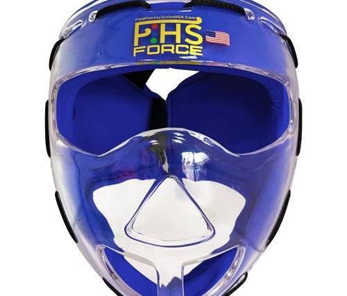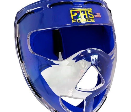 Field Hockey Face Mask FORCE Blue SENIOR: Face Protection for Penalty Corners Clear strong transparent material protects the face from injury Vizor design allows full eye movement without any obstruction Foam padding in the back with elastic material to fit securely and protects the front of the face Junior Size is 8 X 8.5 X 4 inches Senior is 9.5 X 9 X 5 Inches