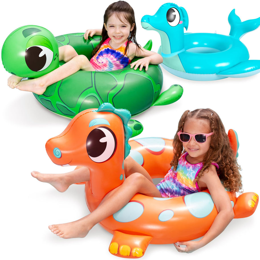Sloosh 3-Pack Inflatable Pool Tubes Floats - Dinosaur & Sea Turtle &