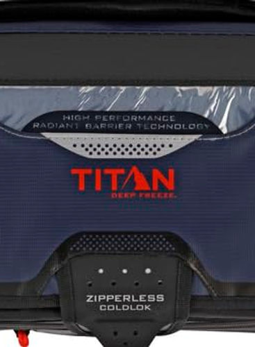 TITAN DEEP FREEZE ZIPPERLESS HARDBODY COOLER: Zipperless cooler features a patented, "flip-open" Zipperless lid for quick access to food and drinks; Keeps ice for up to two days and holds up to 16 cans DEEP FREEZE PERFORMANCE INSULATION: Features Deep Freeze Performance Insulation with an integrated radiant heat barrier; Perfect for keeping food and beverages cold during travel, tailgates, picnics, and more HARDBODY LINER WITH SMARTSHELF: Includes a removable HardBody liner with SmartShelf that allows you to separate hard items from soft so sandwiches and other soft foods don't get crushed; SmartShelf easily removes for extra space DESIGNED FOR CONVENIENCE AND USABILITY: Cooler features an adjustable Backsaver shoulder strap with an anti-slip shoulder pad for carrying comfort and rugged exterior material that is water- and stain-repellent and easy to wipe clean EASY TO CLEAN: Our products are meant to last no matter how dirty they get; Most food residues on the interior and exterior of the cooler can be wiped clean with mild soapy water and a damp cloth; We recommend air-drying to protect cooler insulation