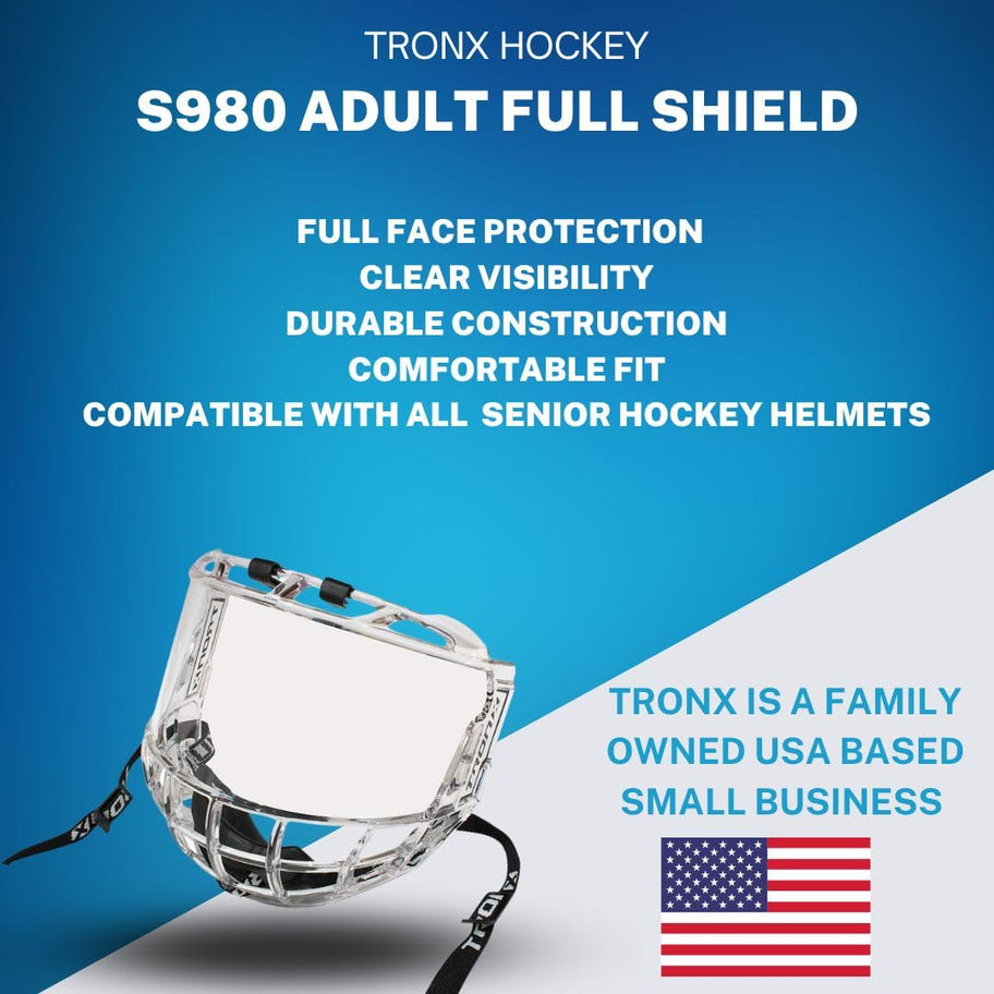 TronX S980 Senior Adult Hockey Clear Full Face Shield Visor Helmet