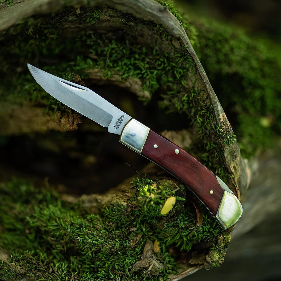 DIMENSIONS: 6.5 inch (16.5 cm) overall length with a blade length of 2.8 inches (7.1 cm) and a weight of 3.1 ounces DURABLE: The extra fine clip point blade is made of High Carbon Stainless Steel and is ideal for precision tasks DEPENDABLE: Knife’s convenient size and nail pull make it ideal as an everyday carry either in your pocket or the included leather belt sheath BE PREPARED: Have confidence that the blade will not slip while in use with the security of the lockback SECURE: Ergonomic wood handle features nickel silver pins and bolsters for a classic aesthetic and solid build