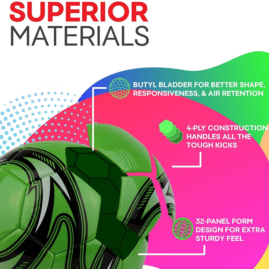 Tough-N-Ready For Every Kick: Kids & adults play soccer with fierce determination as they should! Players need a soccer ball made to withstand their strongest dribbles and passes for practices and game-time. Western Star Soccer Balls are reliable tough through every action. Size 3 (23"-24") is great for ages 8 and under. Size 4 (25” to 26”) is ideal for kickers between 8 & 12 years old, while Size 5 (27” to 28”) is a great choice for those 12 through adult. All ages love how they look & handle! Tired Of Losing Balls?: Tired of your kids losing balls? Tired of balls getting lost in the mix with other balls? The helix design scores big-time—kids, adults, spectators, and everyone else seems to adore this dynamic soccer ball pattern. Get a unique ball that stands out from the rest and is easy to find amongst the sea of other balls. With serious durability & construction goals mastered, the Western Star team knew we wanted to offer an exceptionally attractive outer look. Elevate Your Game: You want excellent-quality recreational products that are cost effective for your budget. Especially in athletic supplies, because the cheap stuff won’t last and the overpriced goods aren’t worth it. Western Star focuses on premium elements and craftsmanship delivered at reasonable prices. After all, you’ll want to throw a pizza party after all those winning soccer games! How Does It Stay So Strong?: Athletes want to know they can wind up with all their might on these strong soccer balls. Coaches and parents take interest in the details. We chose a butyl bladder rather than less expensive rubber options to ensure our soccer balls have staying power, better responsiveness, and great shape and air retention all season long. Thick, 4-ply construction in a 32-panel form makes it even more durable. (Ships Deflated, No Pump) 104 Day Money Back Guarantee - Count on us as a sincere team player when it comes to sporting goods like size 3, 4 and size 5 soccer balls. We at Western Star understand that sports are more than just spare-time fun and games. They are a chance for you to bond with your children and to see them develop through competition. We’re here to help develop that as much as we can. Our 100-day promise and ongoing highly rated support means we’re here for you when you need us, teammate!