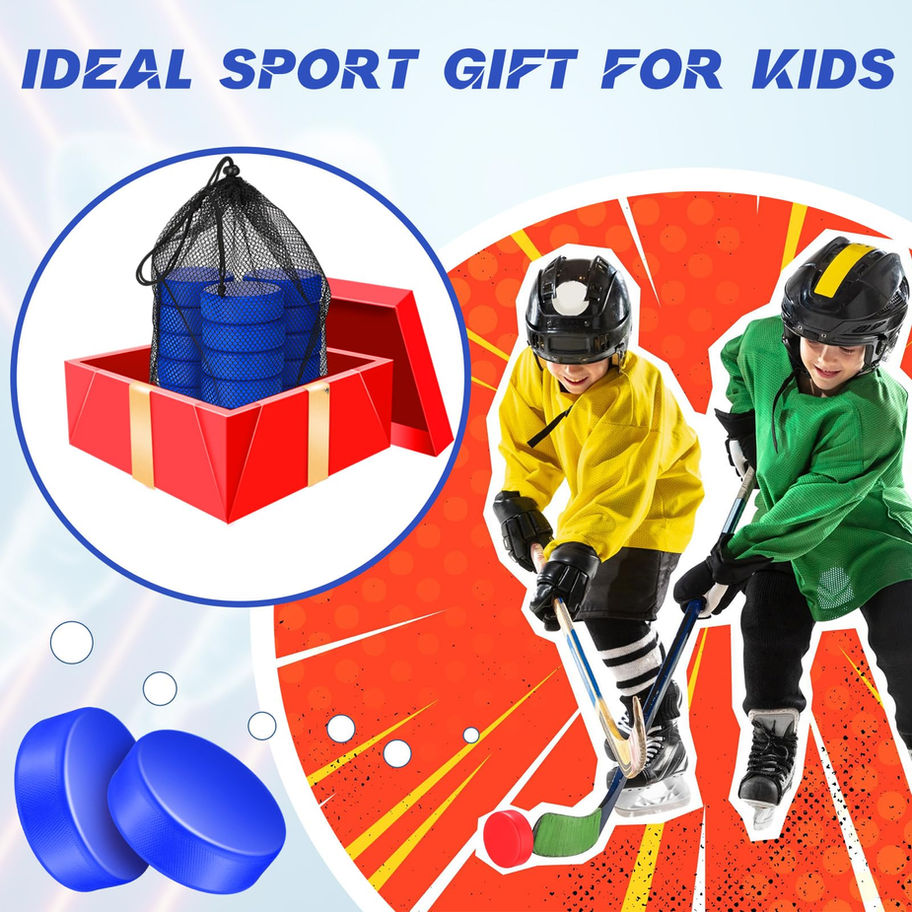 Ice Hockey Supplies: you will receive 20 pieces of foam hockey pucks in blue and 1 black mesh carrying bag; The sufficient quantity of hockey pucks covers your needs for daily training and stick handling, and you can share them with your partner Quality Material Selection: these soft ice hockey pucks adopt quality PU foam material, much safer than traditional hard rubber pucks because they do not cause injury in contact with players or spectators Notable Size Details: each outdoor hockey puck measures about 3 x 1 inches/ 7.5 x 2.5 cm, 3 inches/ 7.5 cm in diameter and 1 inch/ 2.5 cm in height, small and easy to carry; The mesh bag size is convenient storage after use, suitable for family, backyard, travel and outdoor play Ideal Training Items: these ice hockey pucks are available on a variety of surfaces, including carpet, tile, and hard floors, foam pucks are ideal for practising ball holding, shooting, and other skills, allowing players to enhance their skills without injury or breakage to equipment Helpers for Kids Training: these blue hockey pucks can develop a child's interest in ice hockey, not only improve their physique, but also enhance their flexibility, upper body strength and sense of the ball, a good choice for birthdays, summer holidays, carnivals, and classroom rewards