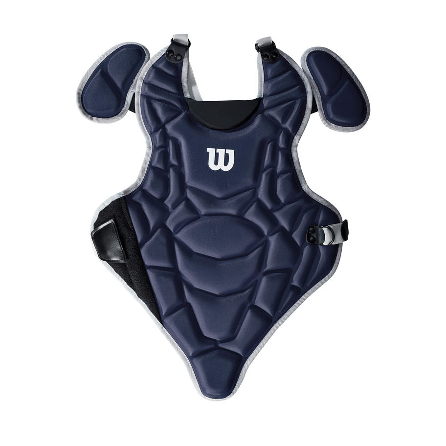 Wilson EZ Gear 2.0 Catcher’s Gear Kit - Navy, Large/X-Large Kit Components: Includes Catcher’s Helmet, Chest Protector and Leg Guards Sizing Recommendation: S/M recommended for ages 5-7 L/XL recommended for ages 7-14 Helmet: Premium grade ABS shell with glossy finish; Venting technology to maintain protection while keeping your head cool; Meets NOCSAE SEI protection standard; Sizes - S/M (6-7), L/XL (7-7 7/8) Chest Protector: Adjustable QuickChange system - set it and forget it; Easy on/off hook and loop closure; Form-fitting design; Removable shoulder caps; Multi-point adjustment system; Sizes - S/M (11”), L/XL (13”)