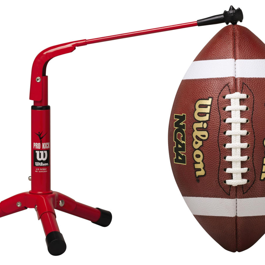 Wilson Pro Kick Football Holder - Red VERSATILITY: Holds any football at the desired angle allowing use at all ages UNIVERSAL GRIP: Construction designed to work on any surface DURABLE MATERIAL: All metal parts for long lasting use BRIGHT COLOR: Red to stand out on the field