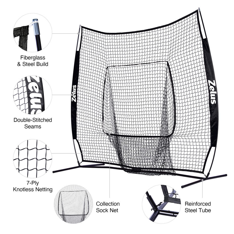 ZELUS 7x7ft Baseball Softball Practice Net | Portable Baseball Net